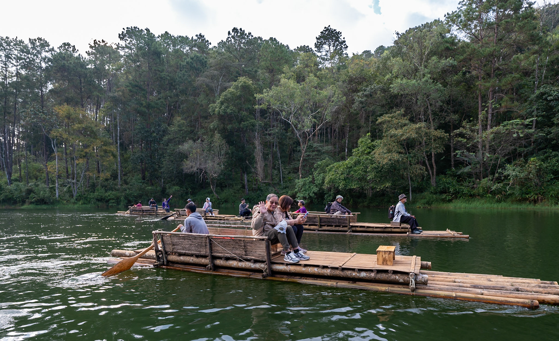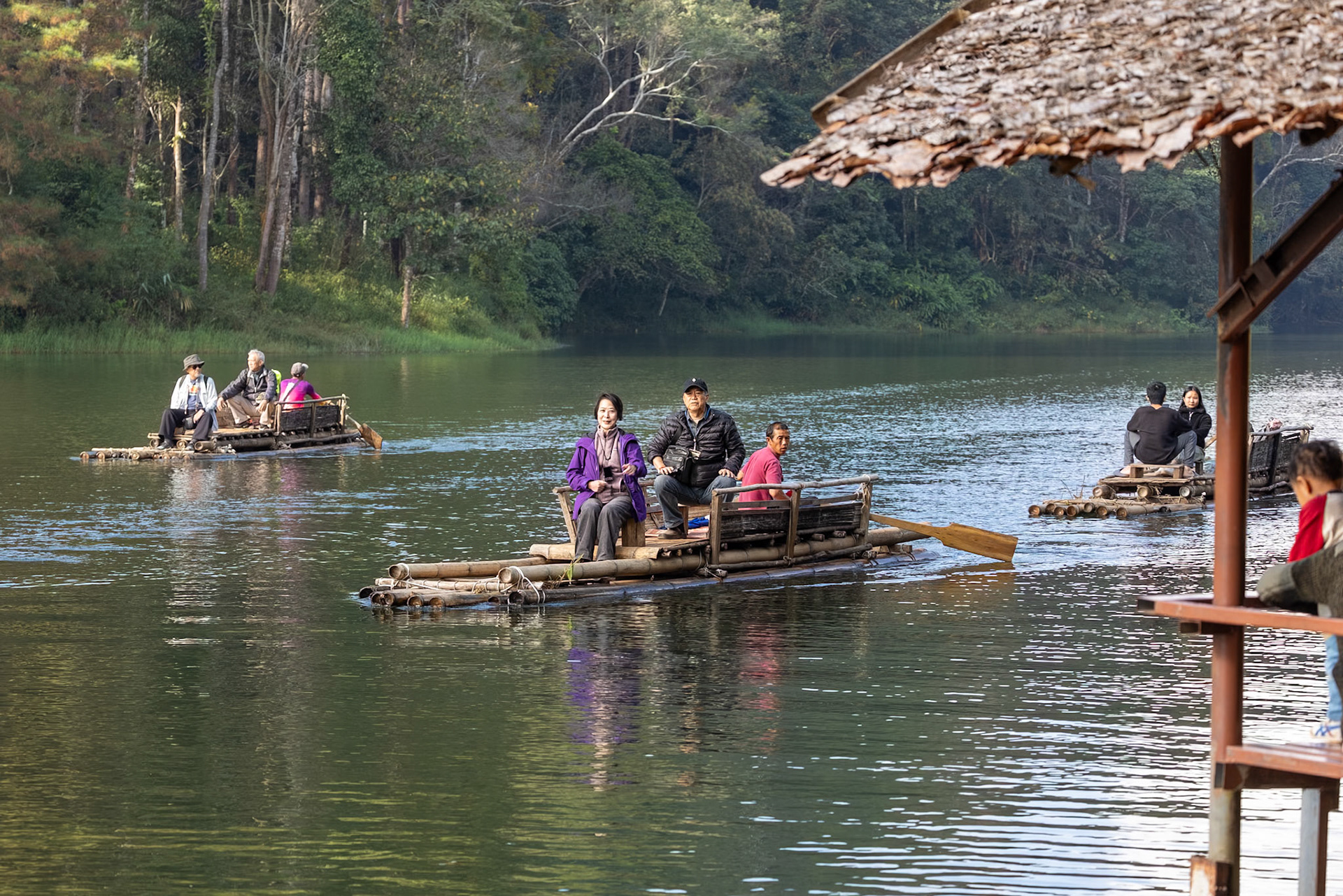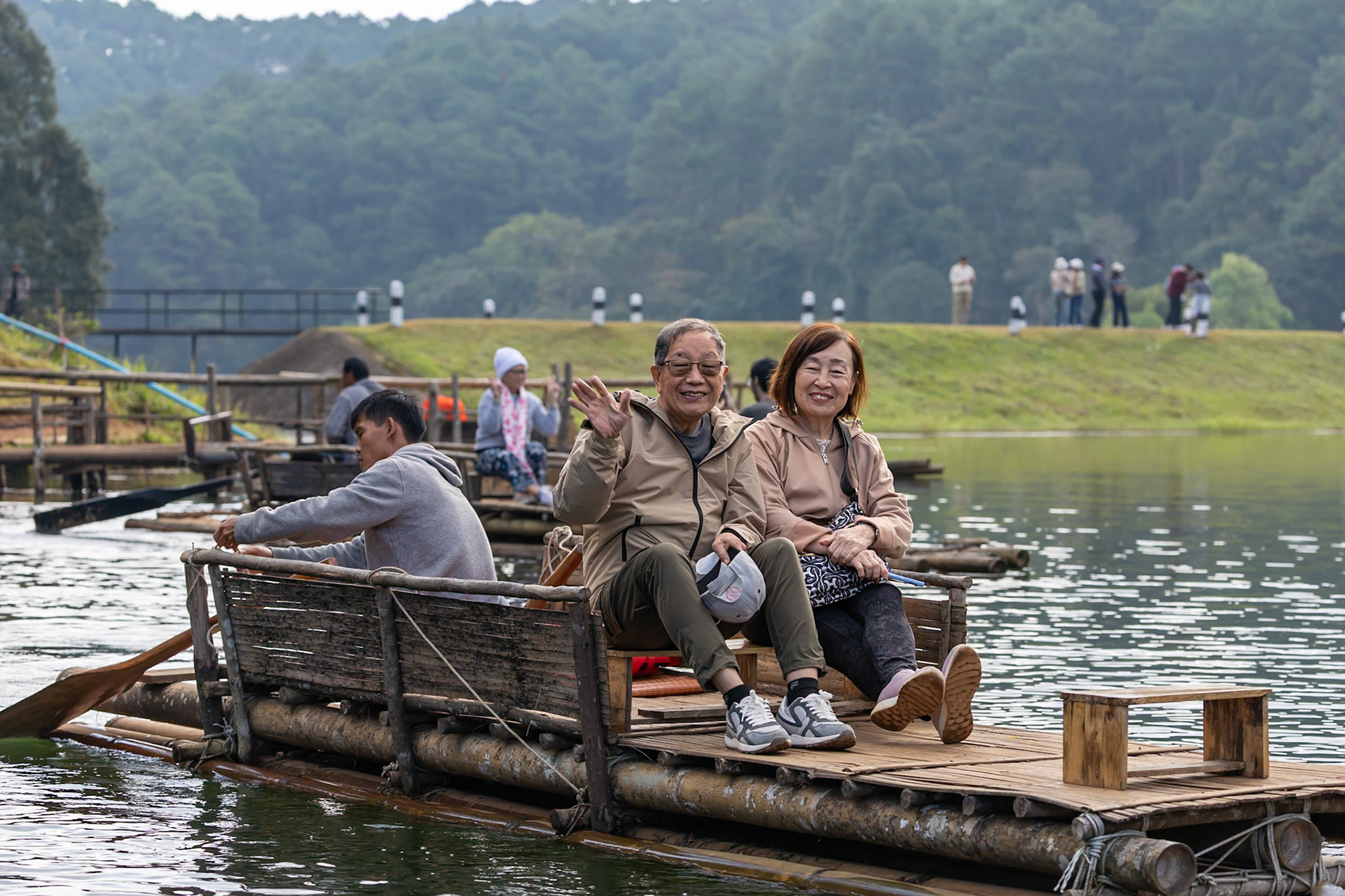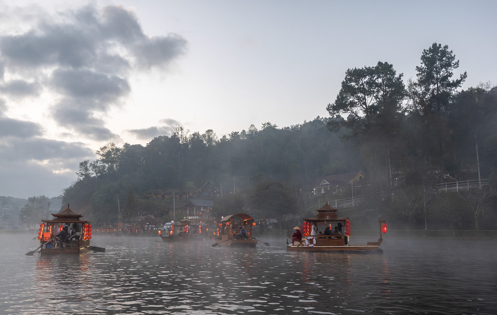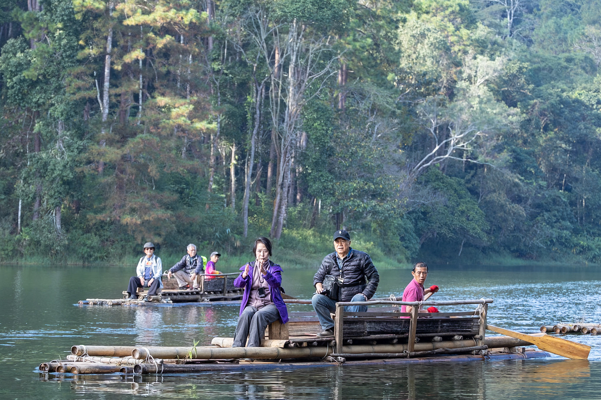 • Boating in dawn mist 霧朦朧湖面繚繞,風裊窕輕紗浮飄 • Breakfast fun • Rafting in Pan Ung – “The Little Switzerland of Thailand” • 鮭魚產卵 • Lunch at Santichon Village 泰式雲南菜 • Unnamed glamping site in Mae Rim District • Unforgettable outdoor hot pot dinner in the cold (leftover dishes could be seen in the next morning’s photo)