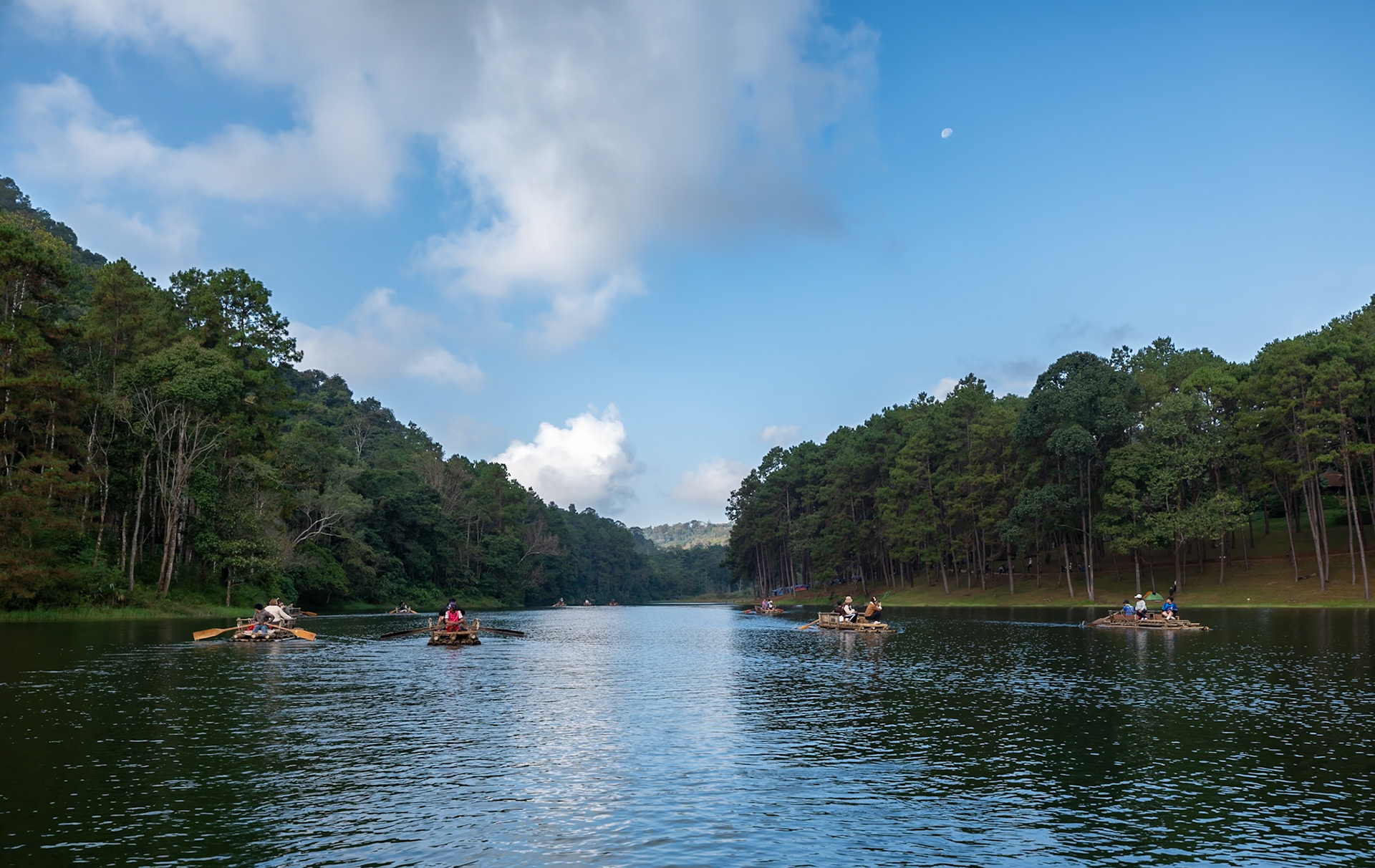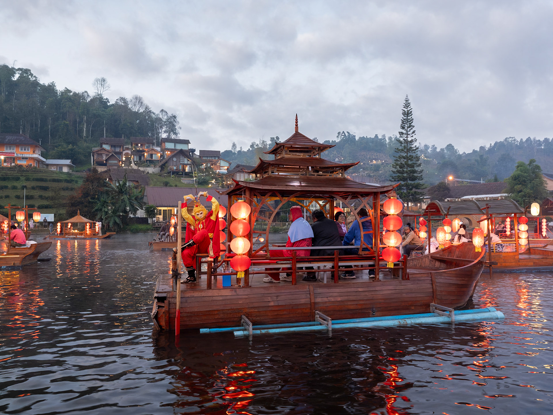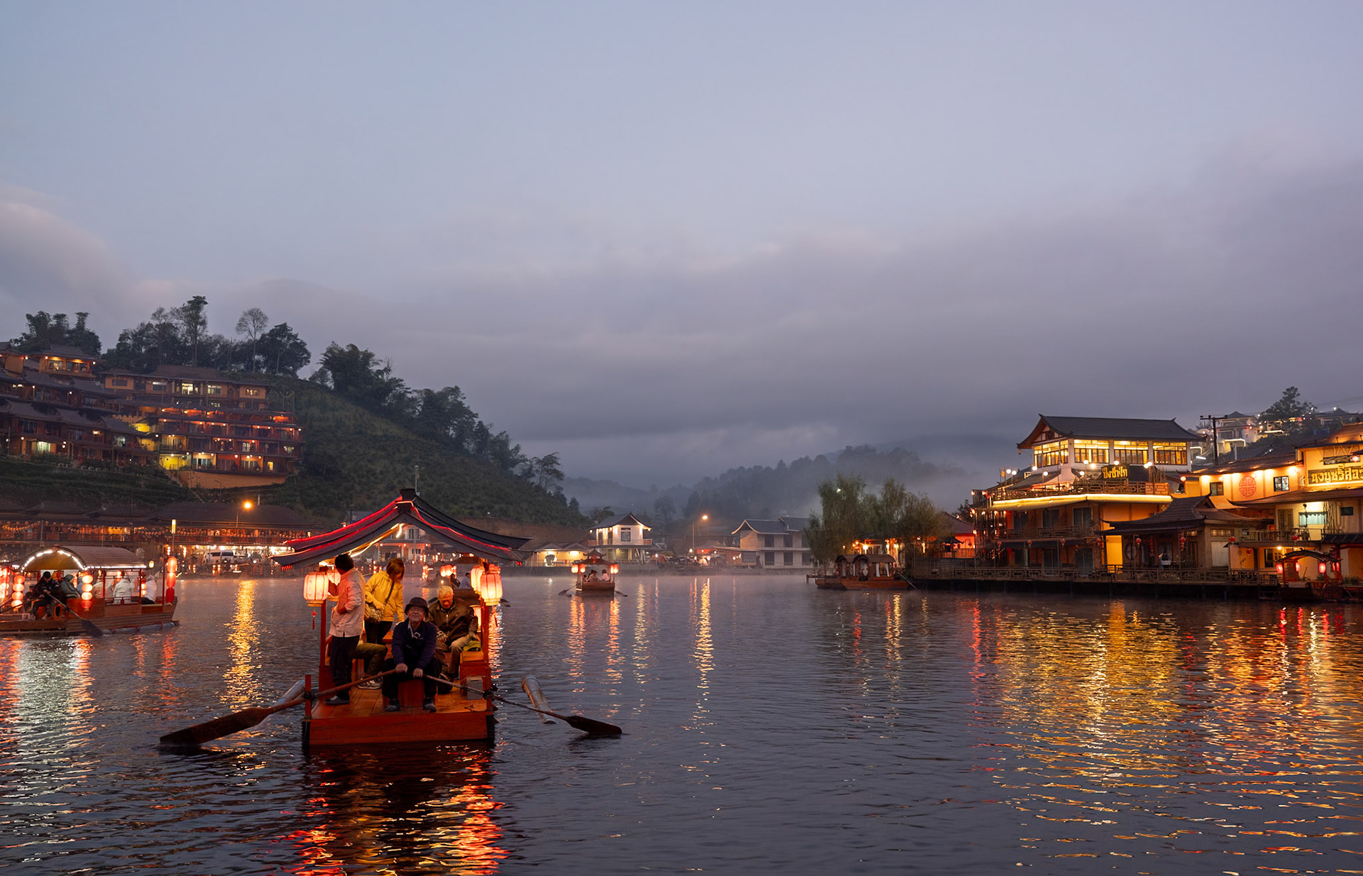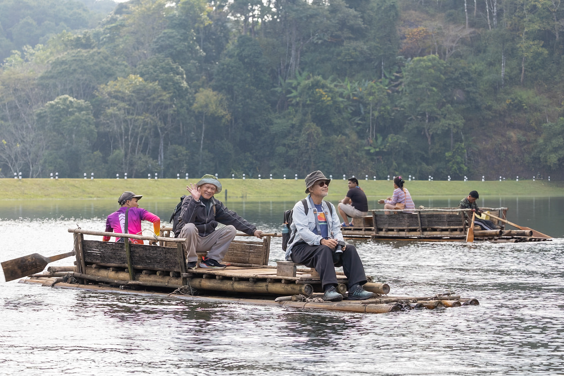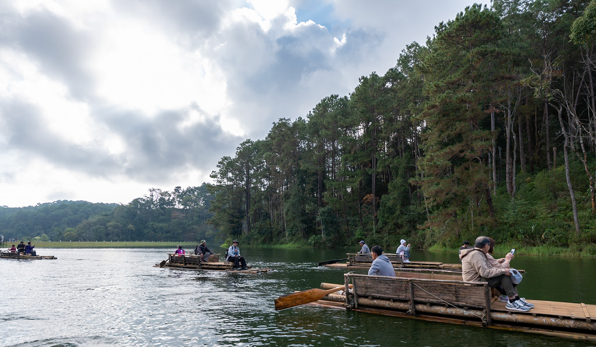 • Boating in dawn mist 霧朦朧湖面繚繞,風裊窕輕紗浮飄 • Breakfast fun • Rafting in Pan Ung – “The Little Switzerland of Thailand” • 鮭魚產卵 • Lunch at Santichon Village 泰式雲南菜 • Unnamed glamping site in Mae Rim District • Unforgettable outdoor hot pot dinner in the cold (leftover dishes could be seen in the next morning’s photo)